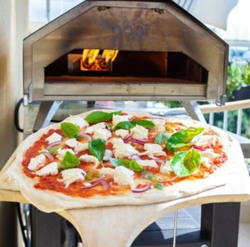 Homemade tomato sauce, mozzarella, goat cheese, onions, olives, ham, ementaller, oregano